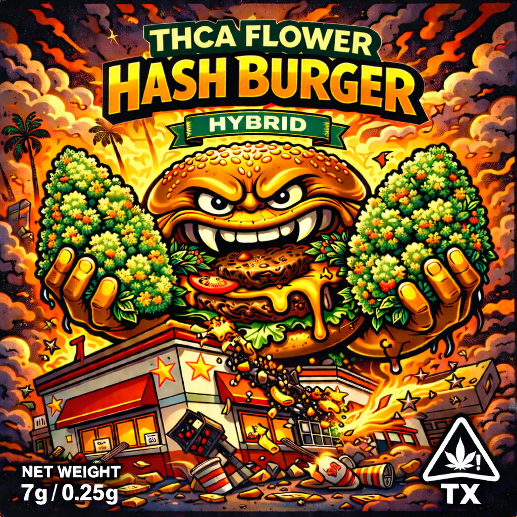 Hash Burger (7g) is an indoor-grown exotic hybrid THCA flower known for its bold, savory funk, rich terpene profile, and potent trichome-covered buds. Smooth, powerful, and crafted for true connoisseurs seeking a premium hybrid experience.